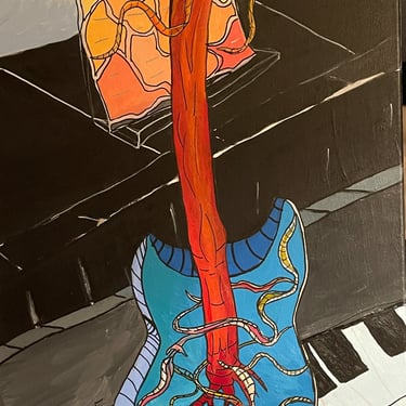 La musique y est centrale : une guitare, à la fois instrument et personnage, apparaît souvent dans mes créations. Elle devient un personnage symbole, messagère de mes émotions et de résonances intimes. Toutefois, chacun peut se reconnaître ou s'identifier dans ce personnage.